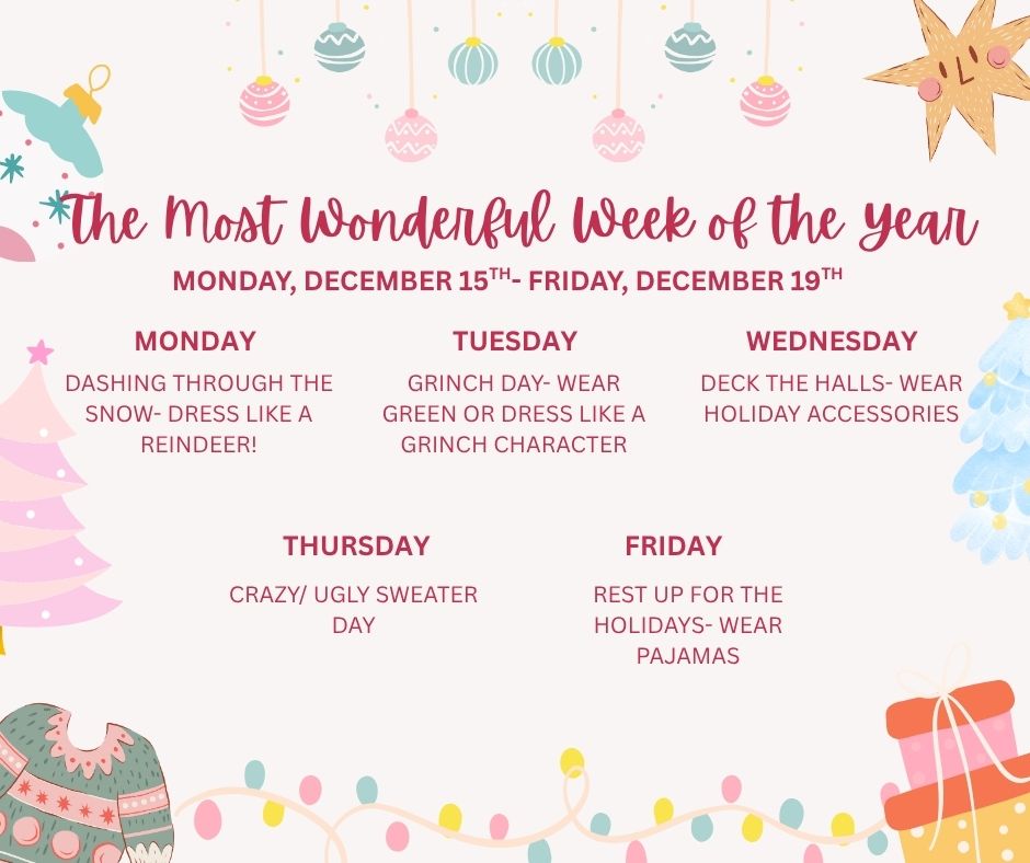 Dear Parents and Guardians,We’re excited to celebrate December with fun Dress-Up Days! Students from Central, the Junior High, and the High School are invited to participate.Dress-Up Days: 12/15 –...